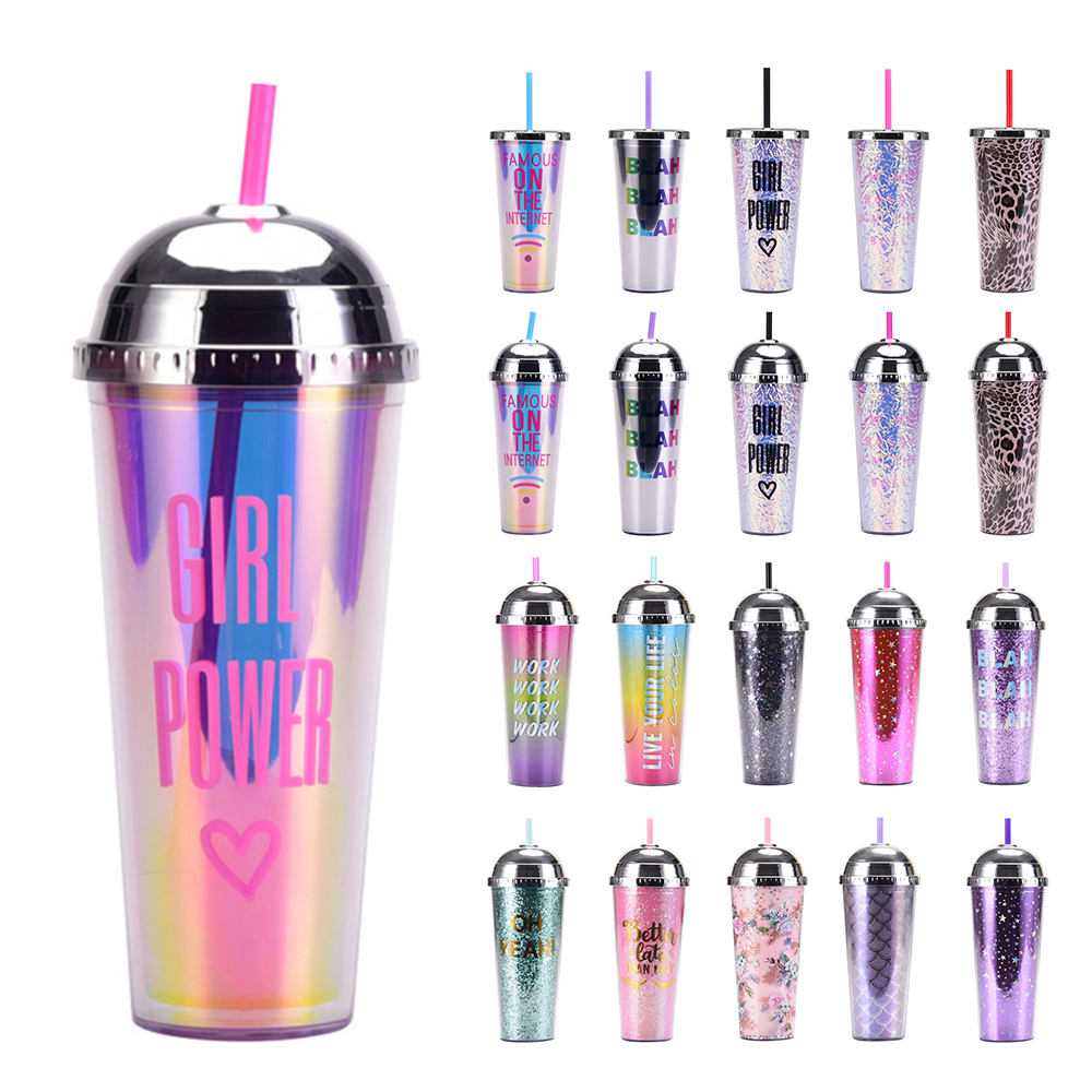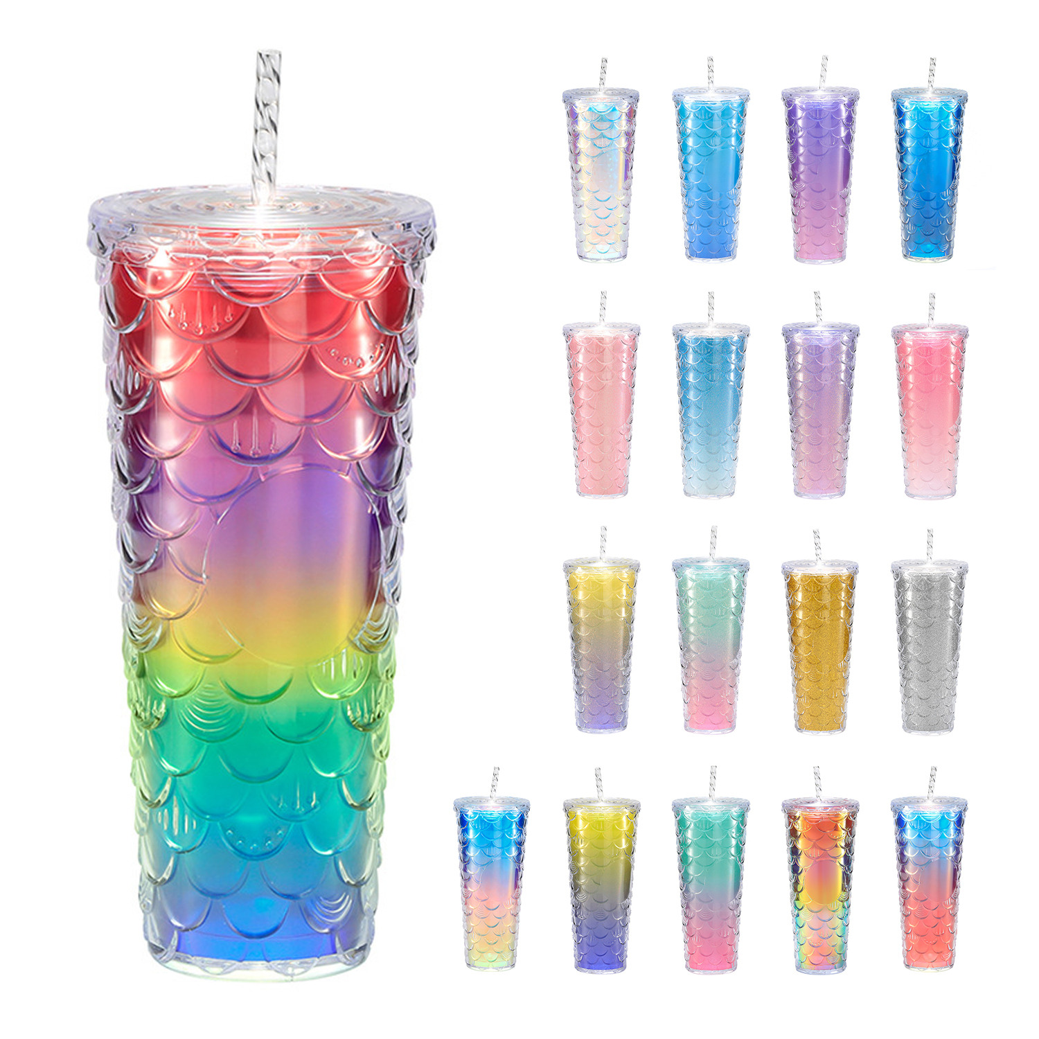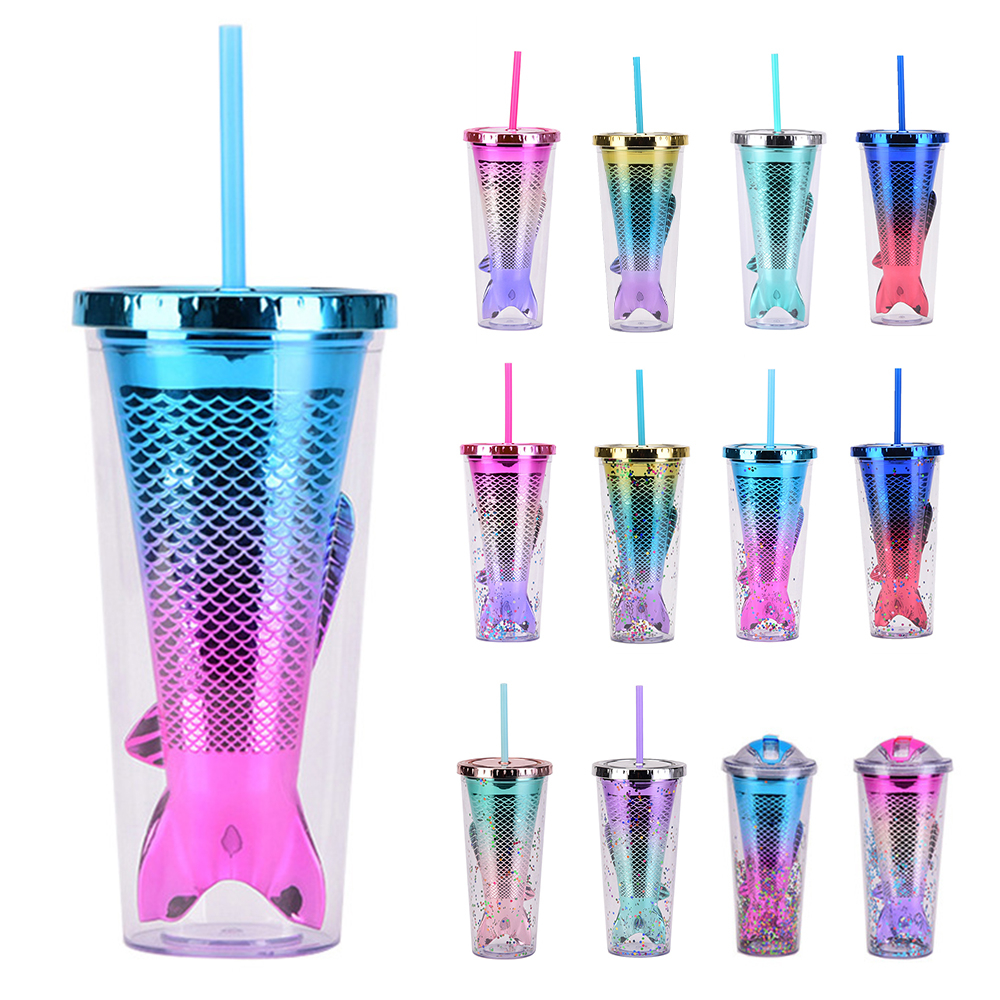 Creative gradient beauty fish tail straw cup electroplating