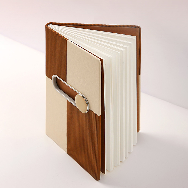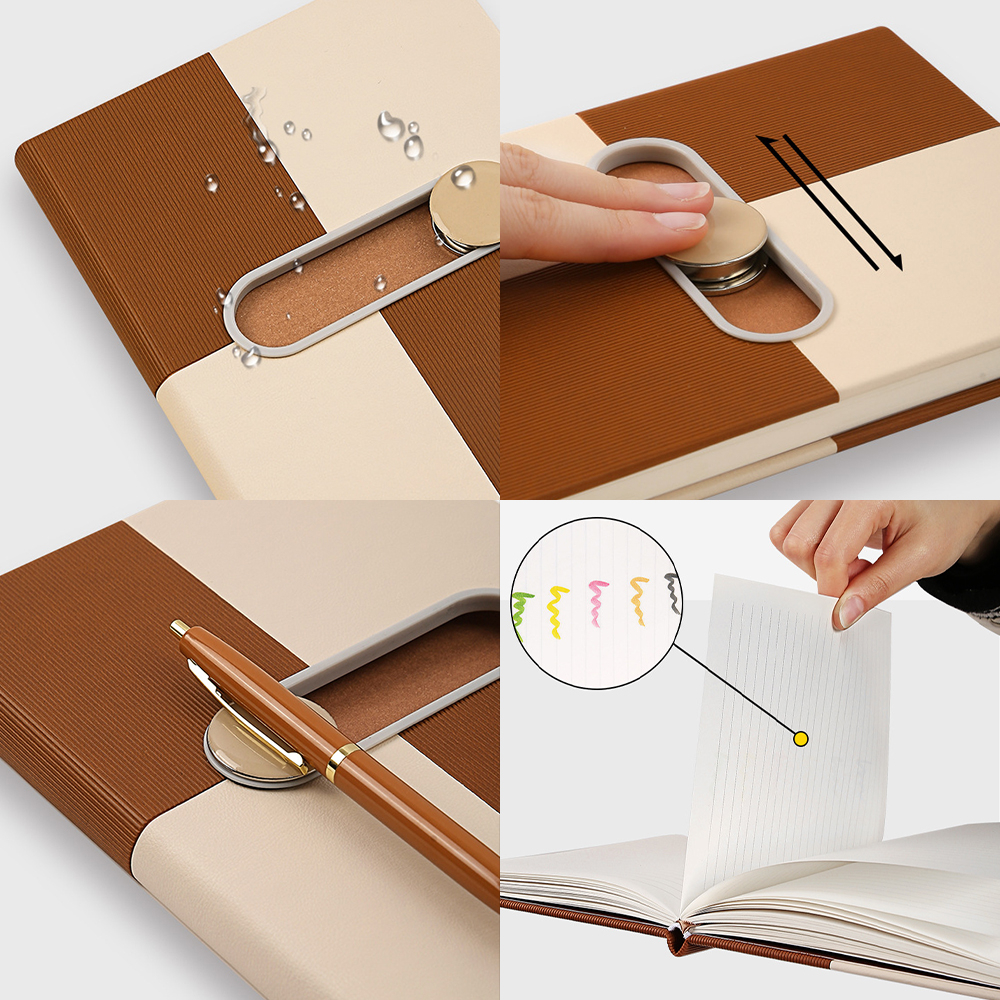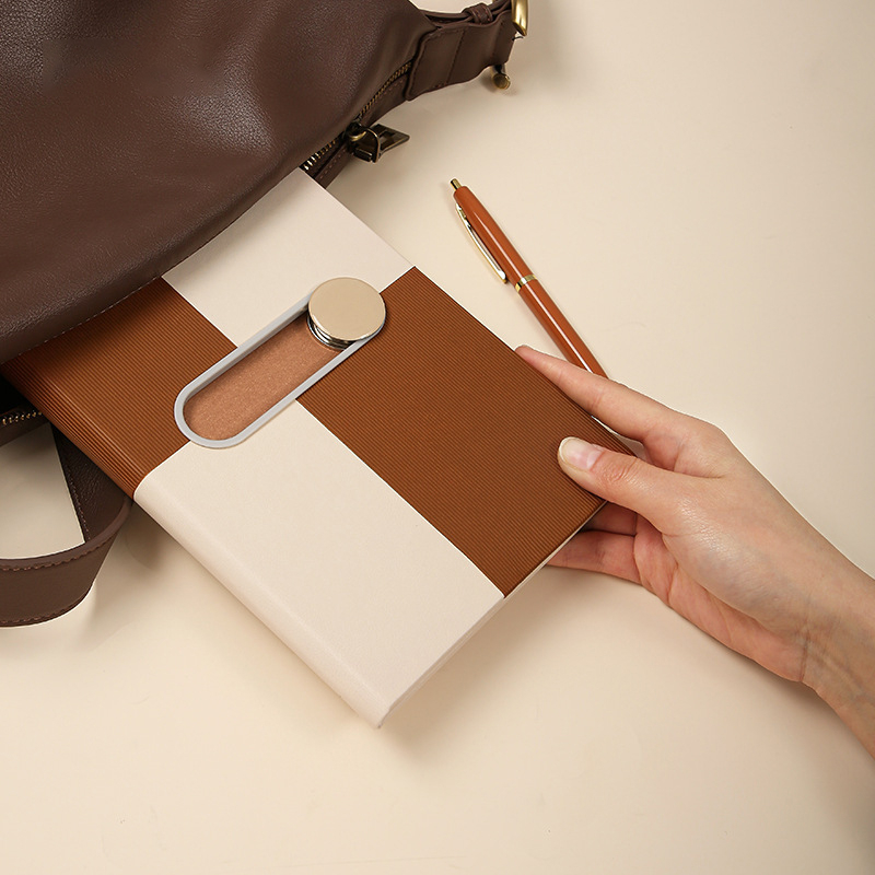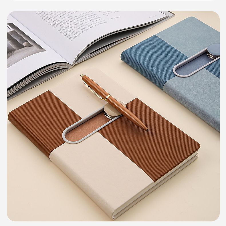 Circular magnetic buckle can hold pen, slide left and right to unlock notebook