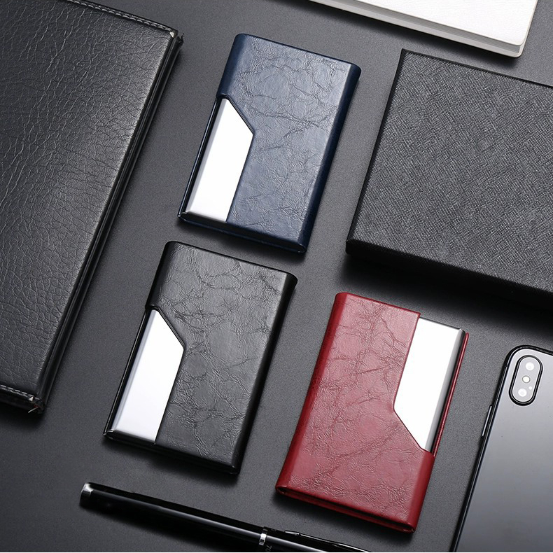 Oil faced leather patterned business card holder