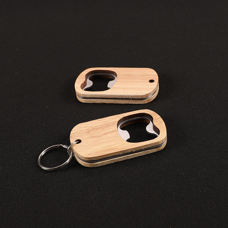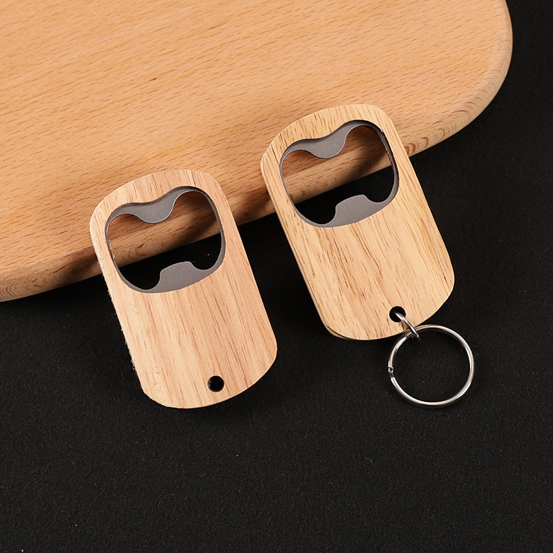 Wooden dog tag bottle opener