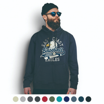 Packaging: Loose packed. Features: Comfortable unisex hoodie made from 80% combed cotton, 20% polyester blend, Midweight 280gsm, fleece knit fabric blend with brushed backing, OEKO-TEX Standard 100 certified fabric, Single jersey-lined hood with shoelace drawstring, Ribbed cuffs and hems, front kangaroo pocket, Available in eight Australasian sizes.
