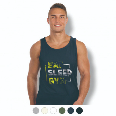 Features: Men s tank top made from 100% combed cotton, Lightweight 150gsm single jersey fabric, Bias binding around the neckline and armholes for a quality finish, OEKO-TEX Standard 100 certified fabric, Available in eight Australasian sizes.