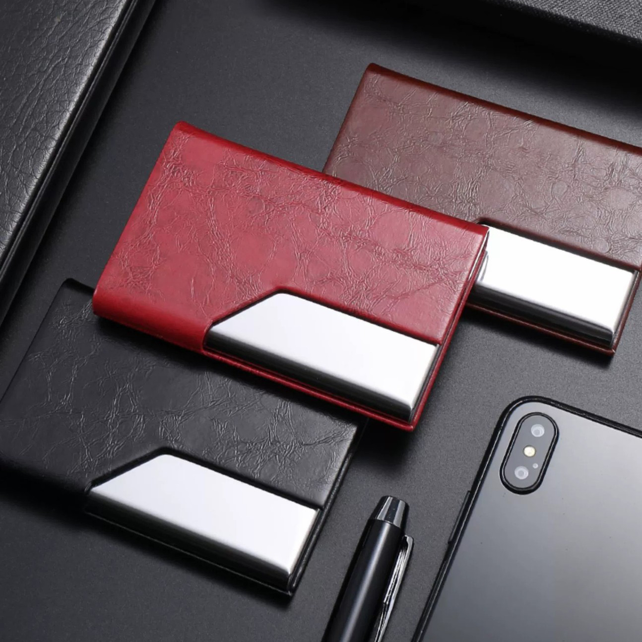 Oil faced leather patterned business card holder